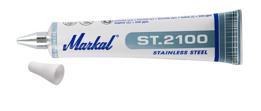 Popisovač s kovovým guličkovým hrotom priemeru 3 mm. Používa sa na značenie výrobkov, ktoré sú vystavované vysokým teplotám do 1000°C Hliníková stláčacia tuba a hrubá vrstva farby ho predurčujú na popis drsných, vertikálnych alebo stropných povrchov s vynikajúcou priľnavosťou na mastné alebo vlhké povrchy.