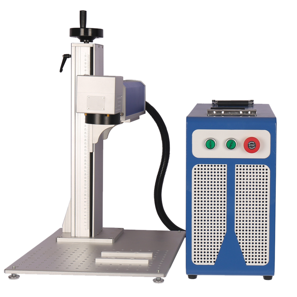 Tento stolný značiaci laser má galvohlavu upevnenú na stojane, ktorý umožňuje manuálne nastavovanie výšky galvohlavy kolieskom. Spodná platňa má otvory na upevnenie dorazov pre opakované presné umiestnenie značených dielov. Galvohlava je neopojiteľnou hadicou spojená s riadiacou jednotkou.