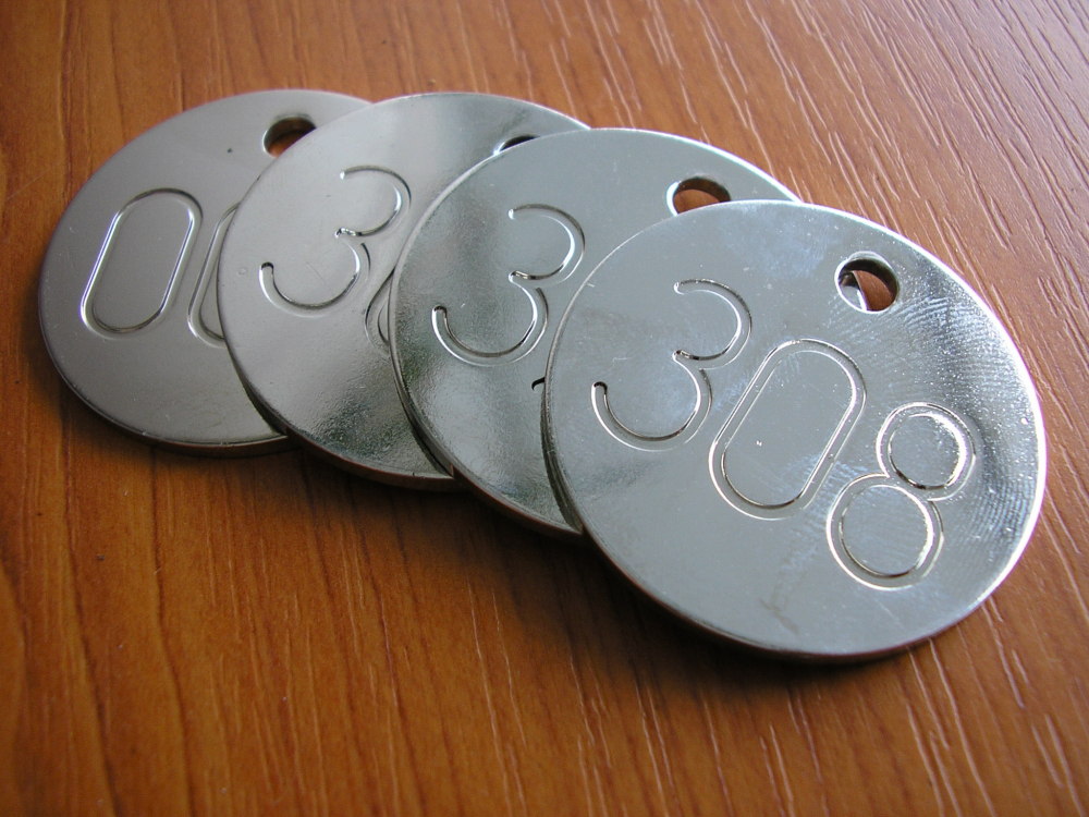 Známky do výdajní náradia kruhové s číslom z hliníku
