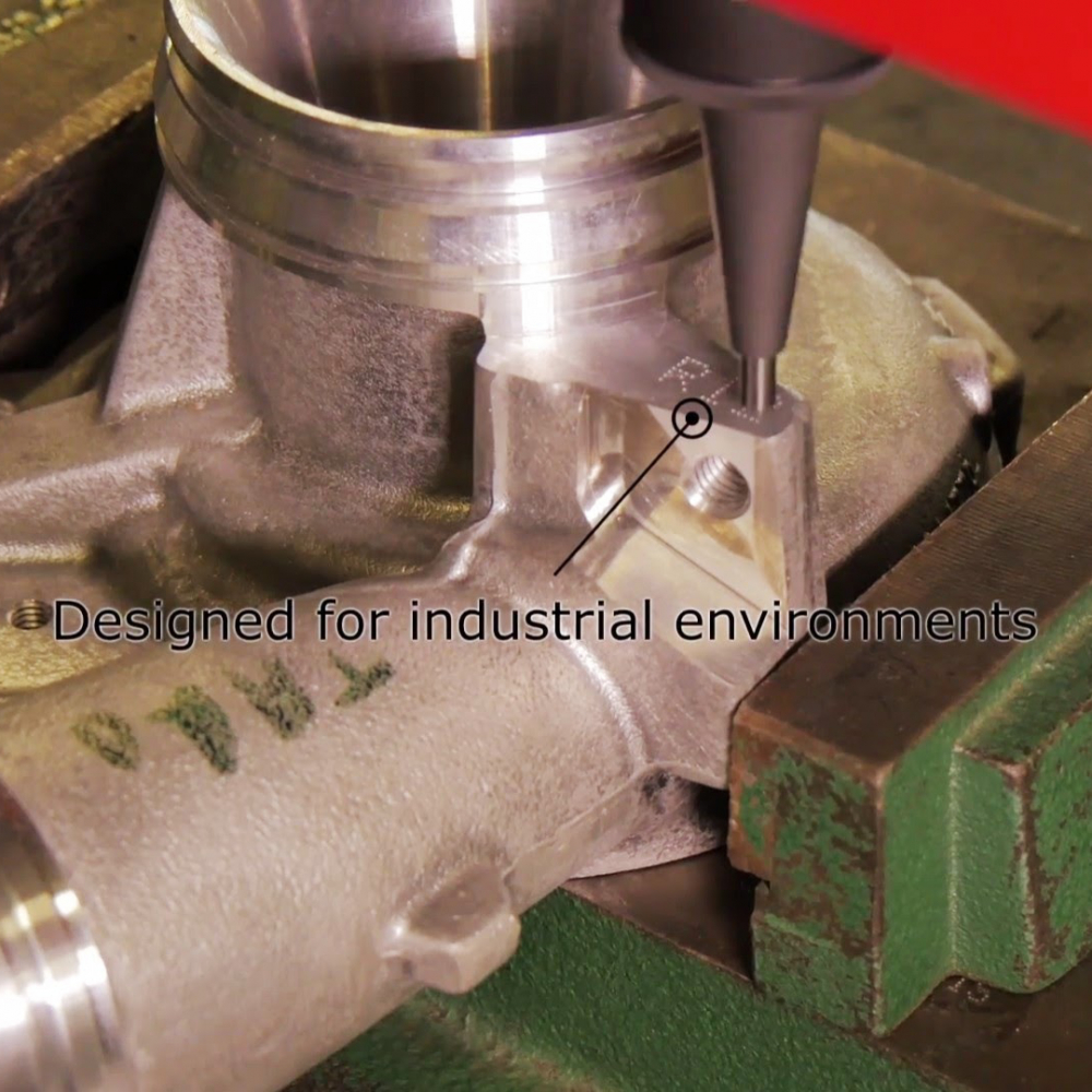 Akumulátorový prenosný mikroúderový stroj vhodný na popisovanie veľkých alebo ťažkých dielov. Kompaktná značiaca hlava v tvare pištole sa ľahko zmestí do neprístupných miest.