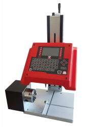 Stojanový mikroúderový stroj vhodný na popisovanie malých dielov. Je určený na položenie na stôl.